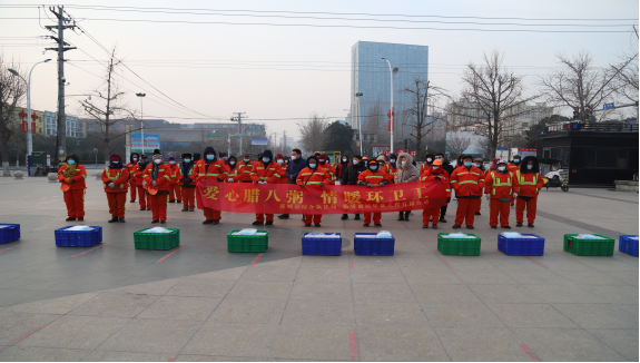 12月30日是中华民族传统节日腊八节,县综合行政执法局与临沂惠民早餐工程有限公司在人民广场举行“爱心腊八粥,情暖环卫工”公益活动,向为坚守一线的城管队员们,维护城市卫生付出辛勤劳动的环卫工人等送上爱心粥。