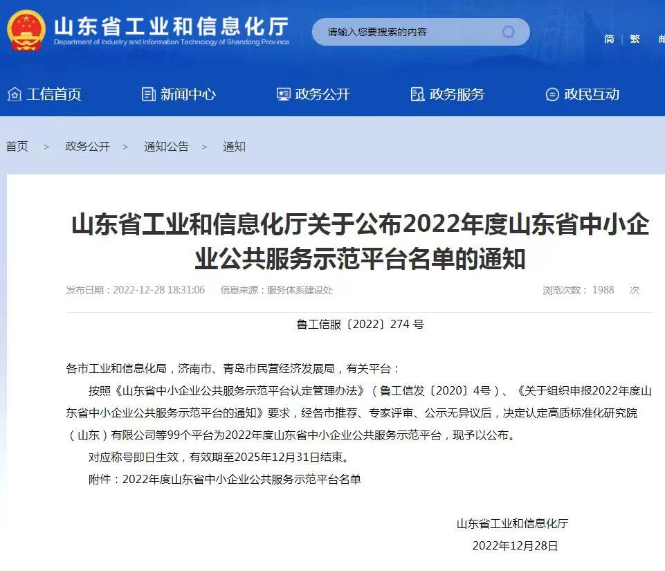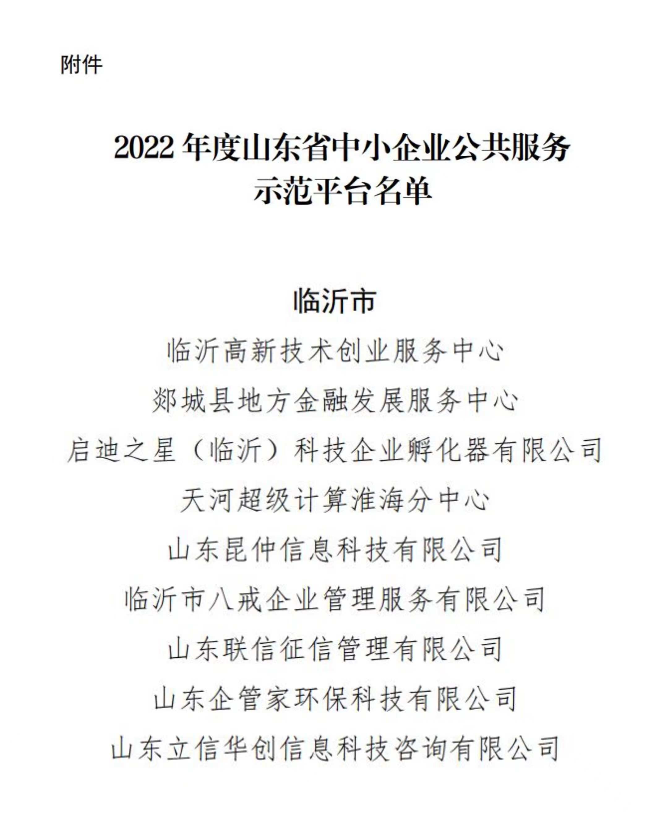 2022年12月28日,省工业和信息化厅下发《关于公布2022年度山东省中小企业公共服务示范平台名单的通知》(鲁工信服〔2022〕274 号),我县地方金融发展服务中心申报的“金融管家”直通车服务平台获评2022年度山东省中小企业公共服务示范平台。