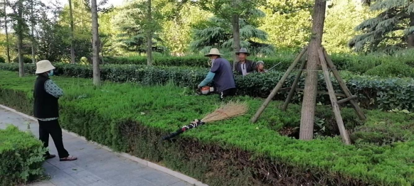 精细修剪保绿植。通过精细化修剪,去除一些枯枝、病残枝、病虫枝、过密交叉枝等,全面清理绿地内各类残桩、断橛,对春季快速生长绿篱地被和灌木球进行整形修剪,既美化树形、调整树势,又能减少病虫害。