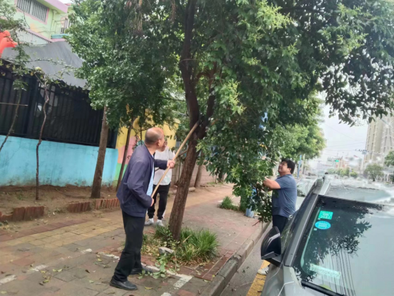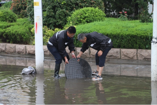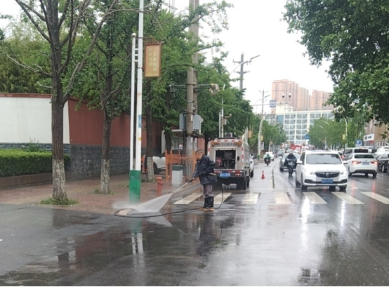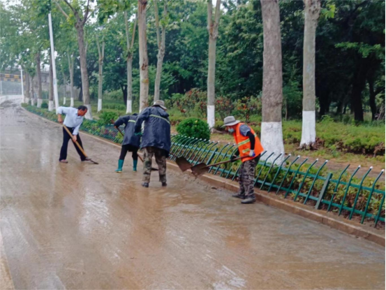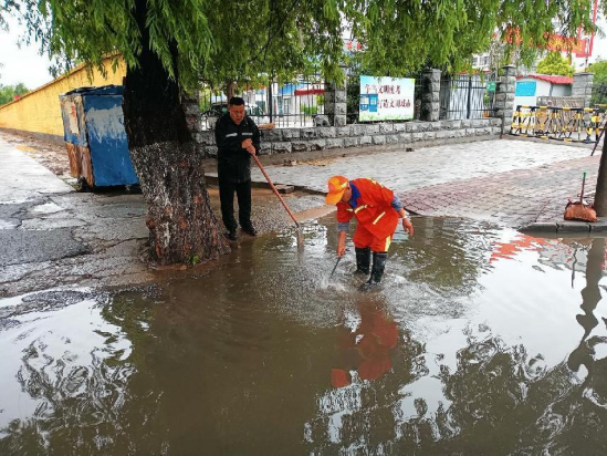 为最大限度地降低恶劣天气给市民通行带来的不良影响,县城市管理局在暴雨过后第一时间组织系统党员干部排查城区积水、积淤情况,重点对对地势低凹、主次干路沿线进行全面检查,对检查发现的各类积水、积淤情况,及时组织机械、人员进行清理。城区积水按照推、扫、排的方式进行清理,同时清理被雨水冲到路边的垃圾;淤泥统一装车倾倒,并对淤泥污染路面进行全面冲洗,确保在消除道路安全隐患的同时,城区道路畅通有序、主次干道干净整洁。