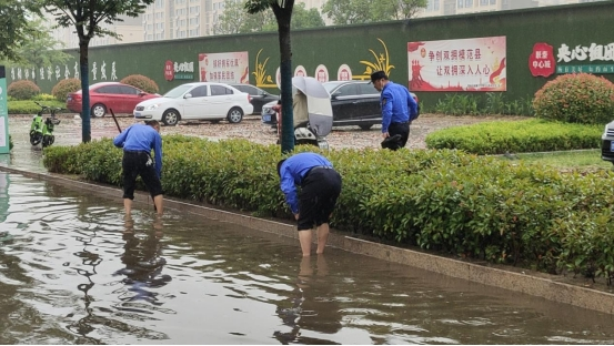 连日来,城区出现大范围强降雨过程,致使多处路面形成积水、淤泥。按照县委、县政府安排,县城市管理局迅速启动防汛应急预案,按雨前到位、雨中备勤、雨后清淤的工作思路,加强协调配合,统一指挥调度各执法中队、园林室、环卫室、市政室迅速开展暴雨后清淤工作,全力保障市民群众出行方便、环境卫生干净整洁。