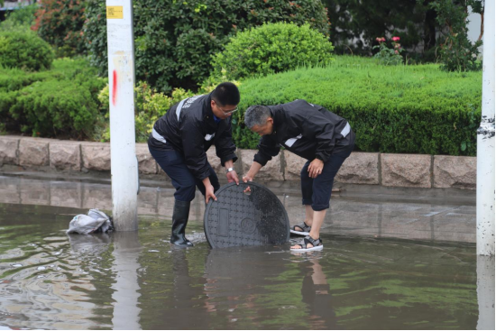 加快设施改造,打好功能保障牌。组建了由防汛抢险、园林管护、环卫作业、市政设施专业组成的120余人抢险队伍,对城区28条雨污水管线进行全面检查和清淤疏通,整治问题窨井盖278处;设置警示标志230处,加强对低洼易涝区域的防汛重点部位的督导检查,保障各类设施在汛期正常运行;购置1200m³/h大功率排涝泵车1辆,调集5台移动排涝泵做好汛期排涝准备,全力防范化解风险隐患。