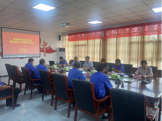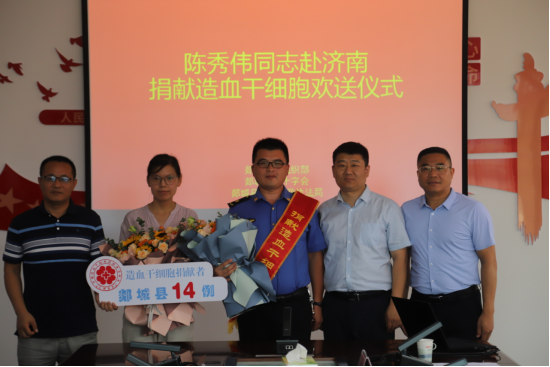 7月18日,县综合行政执法局举行陈秀伟同志赴济南捐献造血干细胞欢送会,县委组织部副部长、县委人才发展服务中心主任周彬,县红十字会会长谢龙志,局党组书记、局长杜清华及局领导班子成员、陈秀伟同志家属和部分职工代表参加。