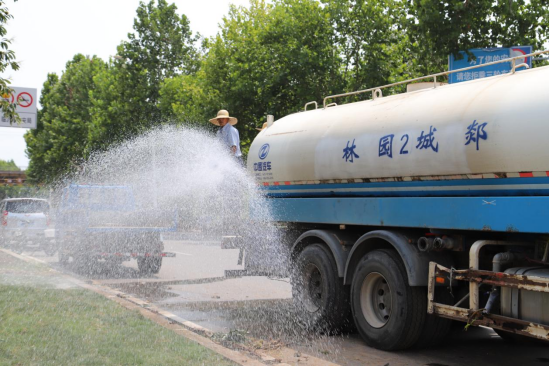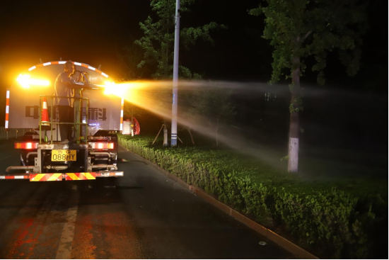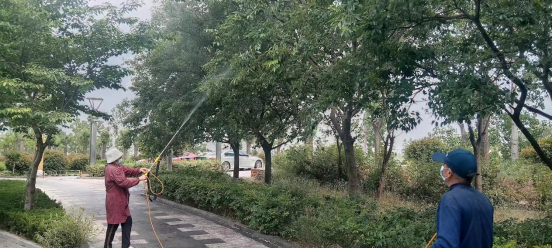 二是加强抗旱保绿。针对夏季炎热,水分蒸发快,土壤易缺水,绿化苗木的水量需求量增大问题。利用早间、傍晚及夜间错峰方式,对公园广场、道路两侧的乔灌木和行道树等,采用喷灌、漫灌、人工浇灌定期循环浇水,做到浇灌工作定人、定时、保量、保质及全覆盖;对新栽植苗木优先科学浇灌,保证水分供给,确保苗木生长旺盛,促进城市绿化整体效果。