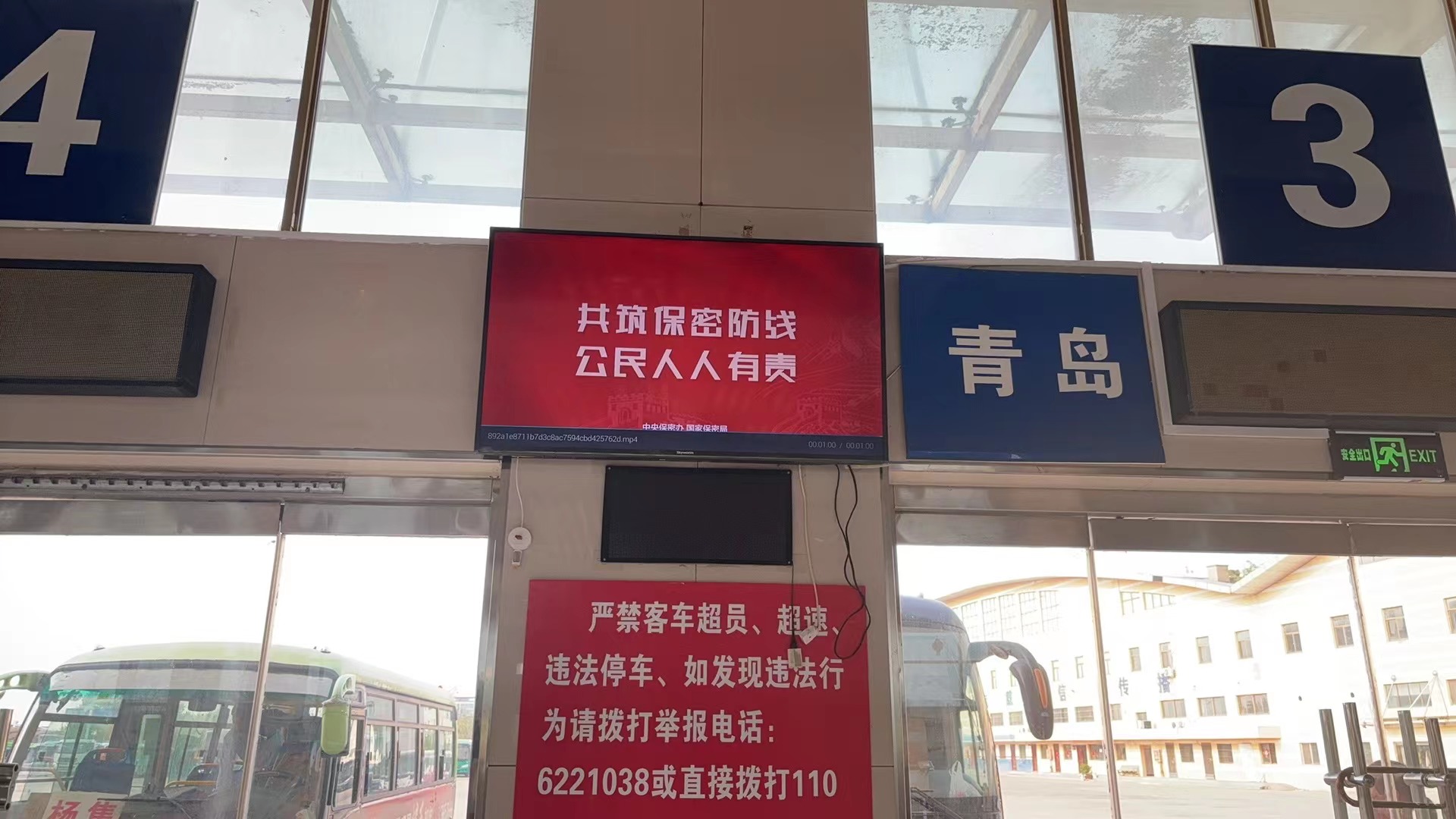 在局机关及二级单位办公楼、汽车站等显示屏滚动播放“全民国家安全教育日”宣传标语及宣传短视频;充分发挥行业优势,利用公交车、出租车流动性强、宣传面广的特点,在全市公交车和出租车的LED显示屏,滚动播出国家安全宣传教育宣传标语。
