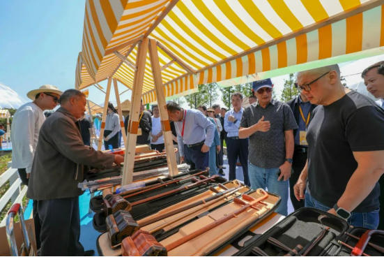 在醉东风非遗市集上,中国结、木旋玩具、二胡、琅琊古琴、挂门笺等精品非遗项目琳琅满目,考察团嘉宾亲身感受了郯城县浓厚的文化底蕴,对非遗进景区、“非遗+产业”助力乡村振兴新路径给予了高度评价。