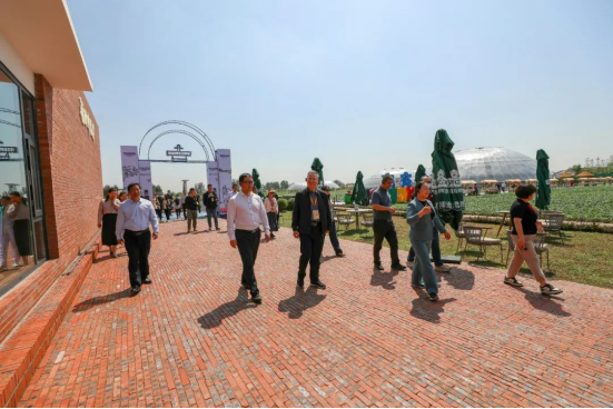 醉东风乡村艺栈项目秉承“让艺术栖于乡野”的发展理念,以打造未来艺术乡村、探索未来乡村发展模式为出发点,将文化、艺术与乡野完美融合,创新实践农文旅综合体的发展模式。参观现场,考察团嘉宾近距离感受了 “诗意地栖居在别处”,17处国内外乡村风情民宿院落、乡野艺术馆、树艺美术馆和稻田啤酒屋等赋予文化与艺术气息的建筑,让考察团的嘉宾们赞誉有加。