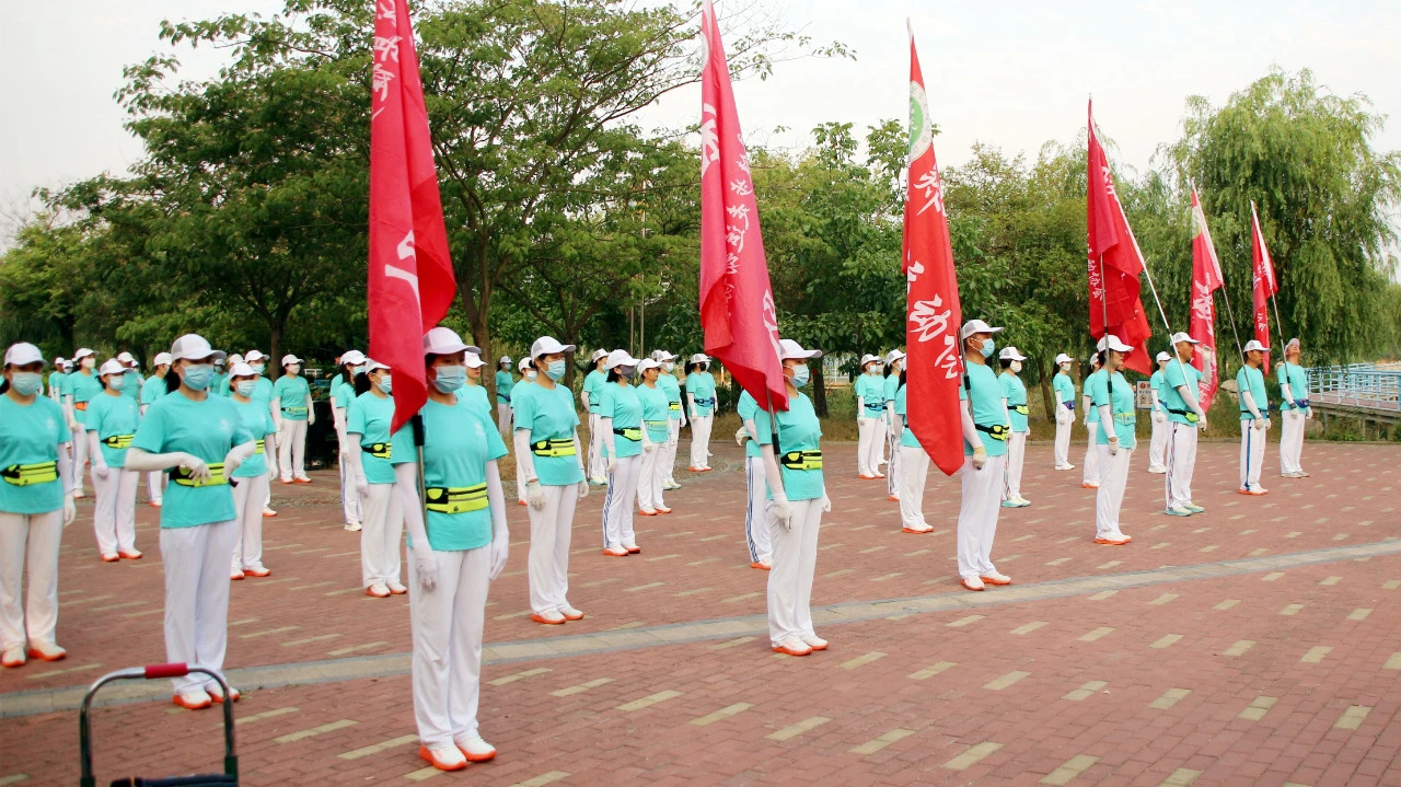 活动现场,各方队健走队员们,高举队旗,阔步向前,在公园步道成为一道亮丽的风景。经过一个小时,完成了健步走行程。至此,白马河健走队四年庆典活动安全圆满结束。