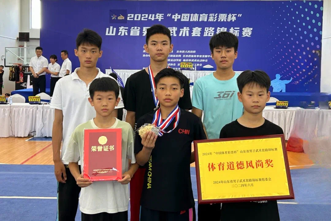 6月26日,2024年“中国体育彩票杯”山东省男子武术套路锦标赛在临沂市沂水体育馆顺利闭幕。本次比赛设甲乙丙三个组别,共有长拳类、南拳类、太极类、对练、传统项目以及集体基本功38个项目,全省16地市19支代表队240名运动员参赛。我县少儿竞技体校武术队五人代表临沂市参加了此次比赛。
