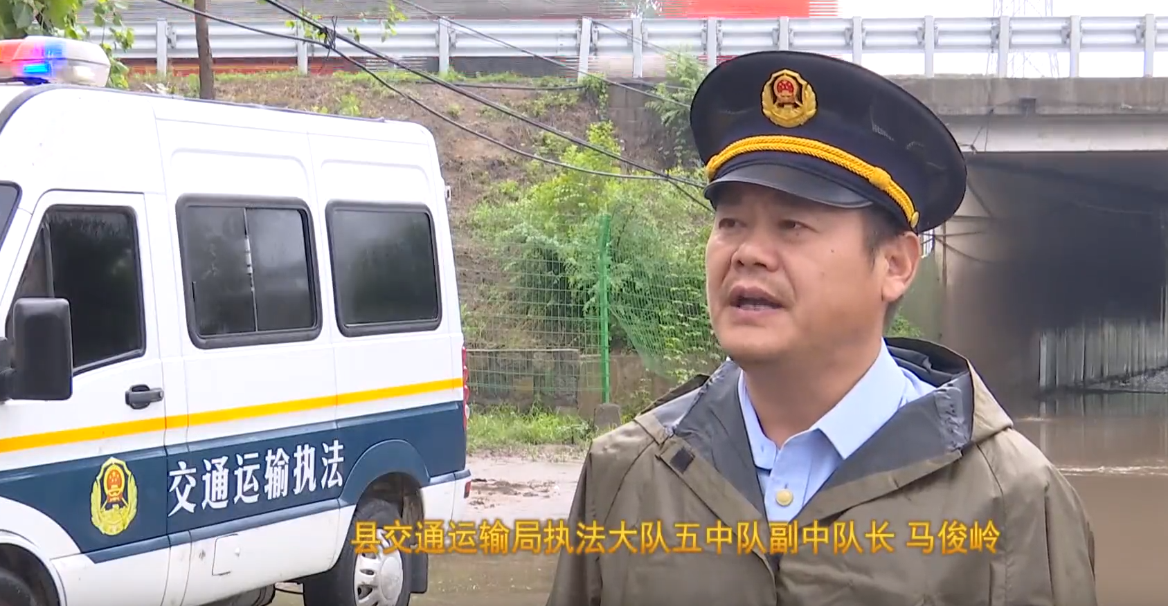县交通运输局执法大队五中队副中队长 马俊岭:“我们巡查到赵庄高速涵洞,发现涵洞内有大量的积水,影响车辆通行,当即对路口进行了封锁,引导车辆绕路行驶。同时联系维修人员对排水设施进行了清理维修,确保路面畅通。”