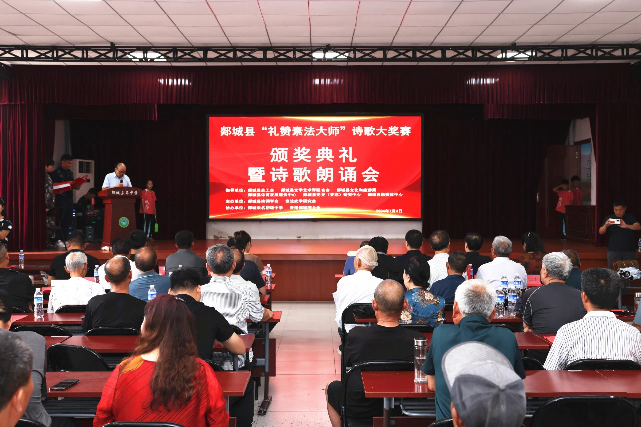 7月4日,由县文学艺术界联合会、县体育发展服务中心、县总工会、县文化和旅游局、县党史(史志)研究中心和县融媒体中心为指导单位,县诗词学会、素法武学研究会主办,未名中学、香港郯城同乡会协办的郯城县“礼赞素法大师”诗歌大奖赛颁奖典礼暨诗歌朗诵会,在未名中学会议礼堂举办。