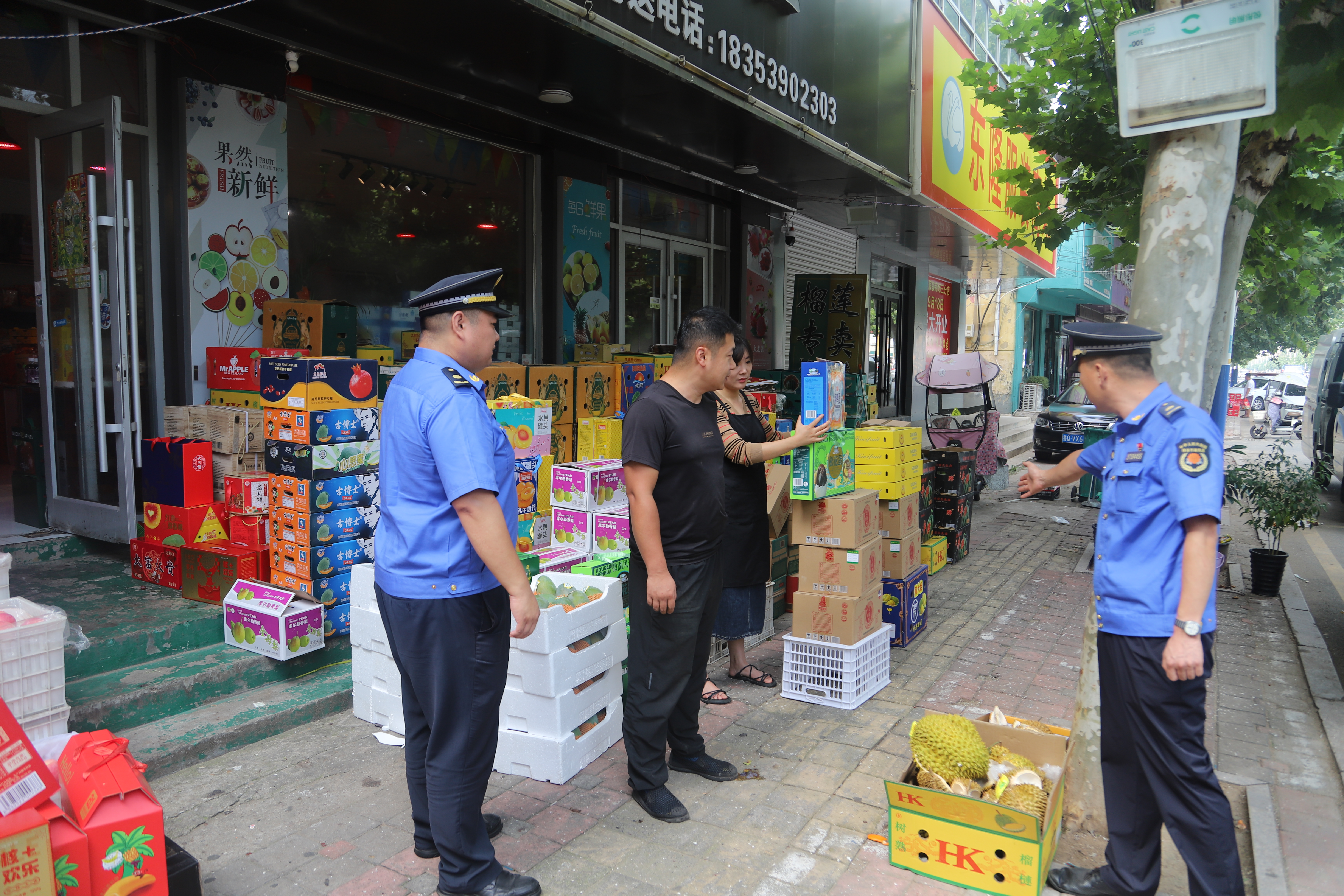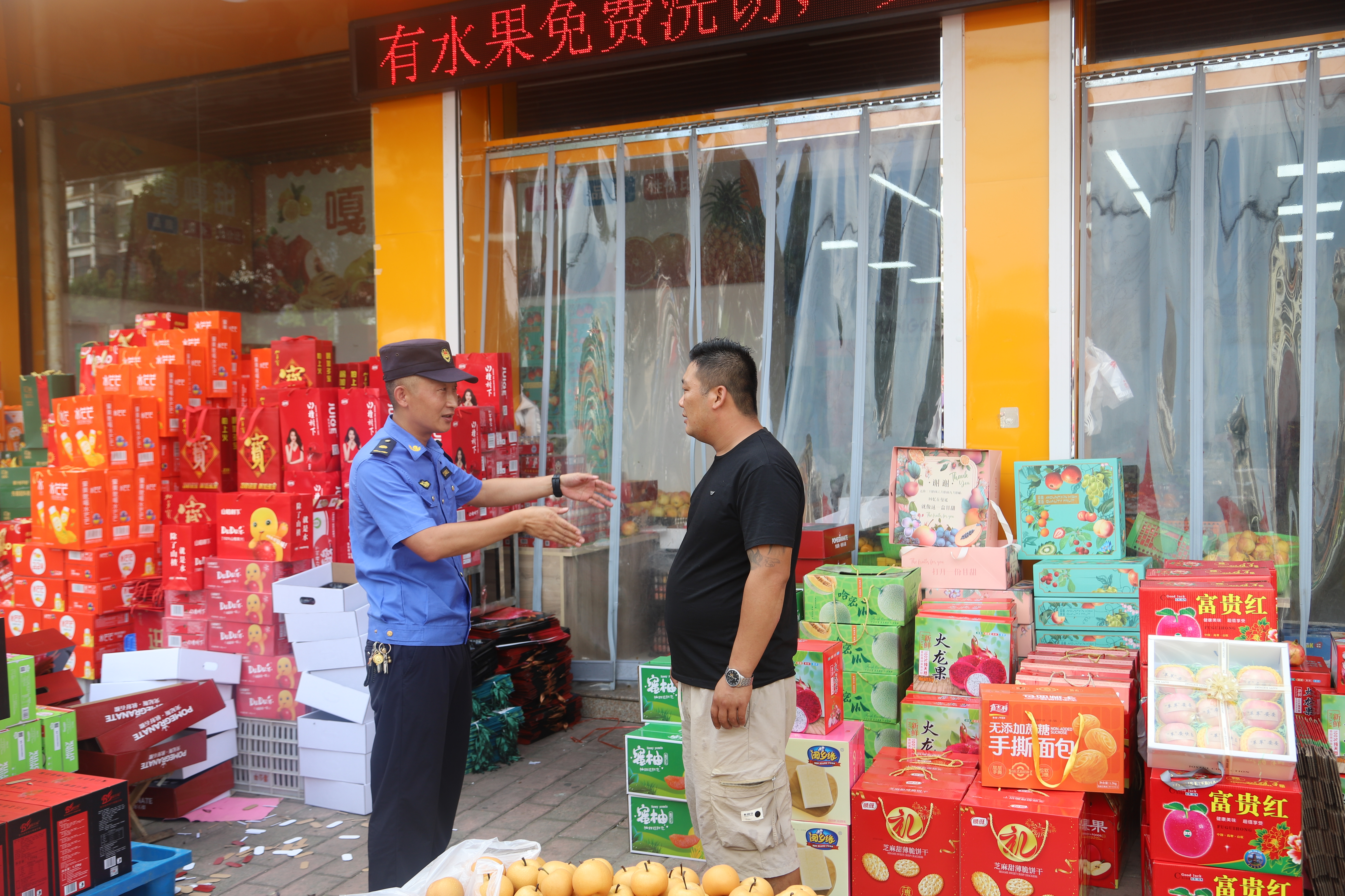“宣传引导”,文明入心。城管队员本着“不影响交通、不占用消防通道、不影响市容,方便群众,满足需求”的原则,坚持因地制宜,一街一策、一点一策,做好秩序维护和环境保障工作。同时主动上门服务,积极宣传引导企业、经营者在规定区域、限定时间内有序、规范开展经营活动,满足商户、群众日常需求,争取群众的支持理解与积极配合,并督促沿街商户做好垃圾处置工作。