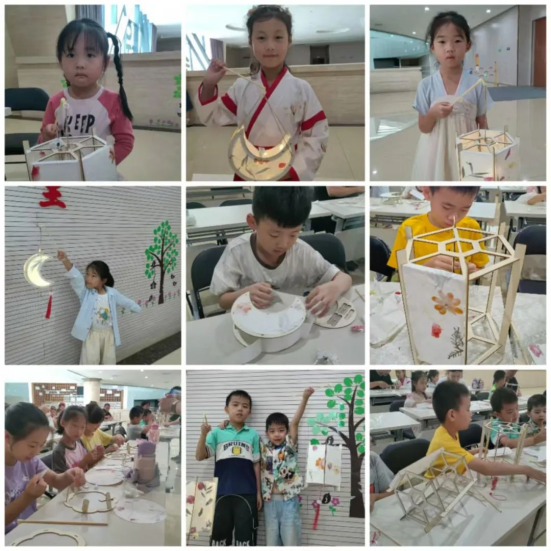 在郯博小课堂上,社教老师通过有趣的互动,给学生讲解了中秋节的由来及相关习俗。在社教人员和志愿者们的指导下,家长与孩子们一起按照流程制作花灯,随着揭、串、贴、拼等一系列步骤有条不紊的开展,不起眼的手工材料逐渐变成各式各样的精美花灯。花灯制作的过程增进了亲子关系,也加深了对中秋节挂灯笼这一传统习俗的认识。