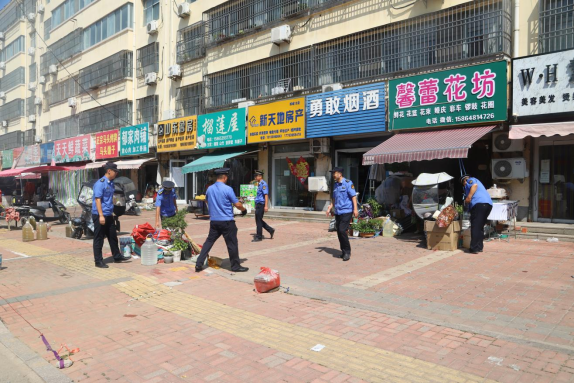 一、精细管理,市容秩序全面提升。聚焦城区主次干道、游园广场、商业区、背街小巷、城乡结合部等重点区域,通过“重点整治+常态管理”相结合方式,对主城区店外经营、占道经营、乱拴乱挂、乱堆乱放、乱泼乱倒等乱象进行逐路段集中清理。整治过程中,执法人员“徒步扫街”,规范着装,佩戴执法记录仪,文明用语,与沿街商户耐心沟通,引导帮助商户把超出门店经营的商品、物件整齐摆放回店内,将道路乱挂晾晒衣物、路边拖把等及时收回。截至目前,累计清理占道、店外经营、流动摊贩100余处,非法小广告、条幅100余处,乱泼乱倒16处。
