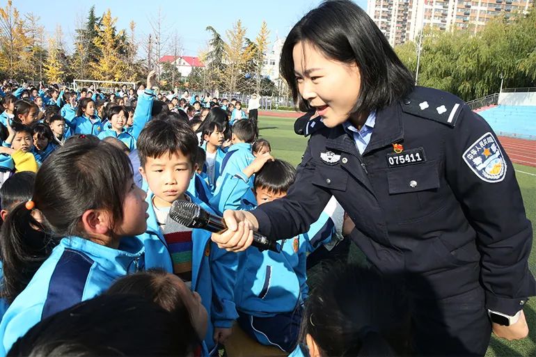宣讲期间,民警通过以案释法的方式,向学生们讲解了未成年人违法犯罪的有关法律规定、如何预防和处置校园欺凌等不法侵害以及交通法规等方面的内容。最后设置有奖问答环节,给积极回答问题的同学奖励警察小熊,现场学生们踊跃参加,气氛热烈。