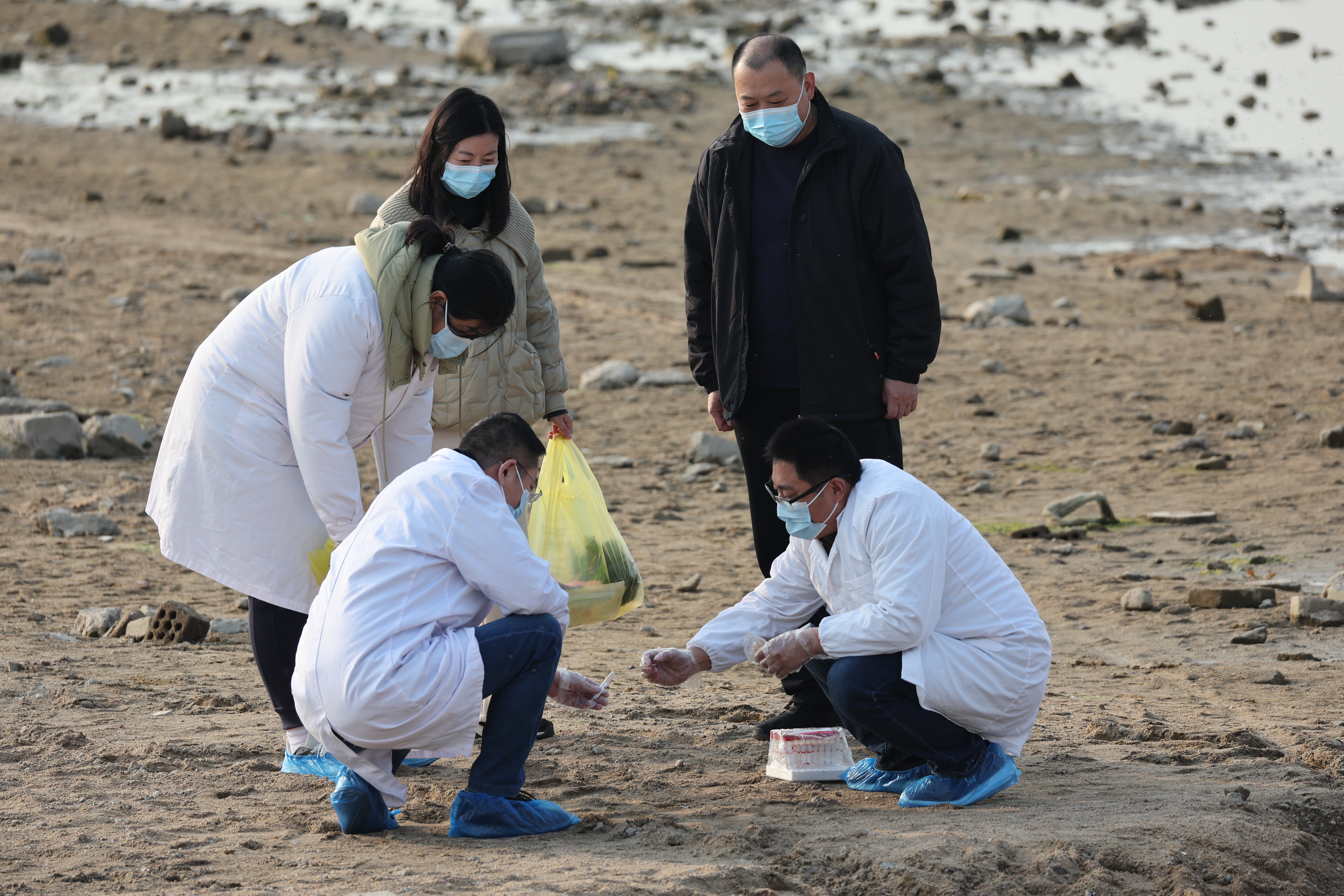工作人员对沂河洪福寺拦河闸上下游候鸟集中栖息区域进行了巡护巡查,发现有骨顶鸡、凤头鸊鷉、中华秋沙鸭、普通秋沙鸭、赤麻鸭、绿头鸭、斑嘴鸭、大白鹭、苍鹭、黄嘴白鹭、灰喜鹊、麻雀等野生鸟类600余只,栖息正常,无患病、死亡等异常现象。在巡护巡查过程中,工作人员在鸟类栖息地进行了现场采样,共采集鸟类粪便等样品20份,拟进行室内检测。