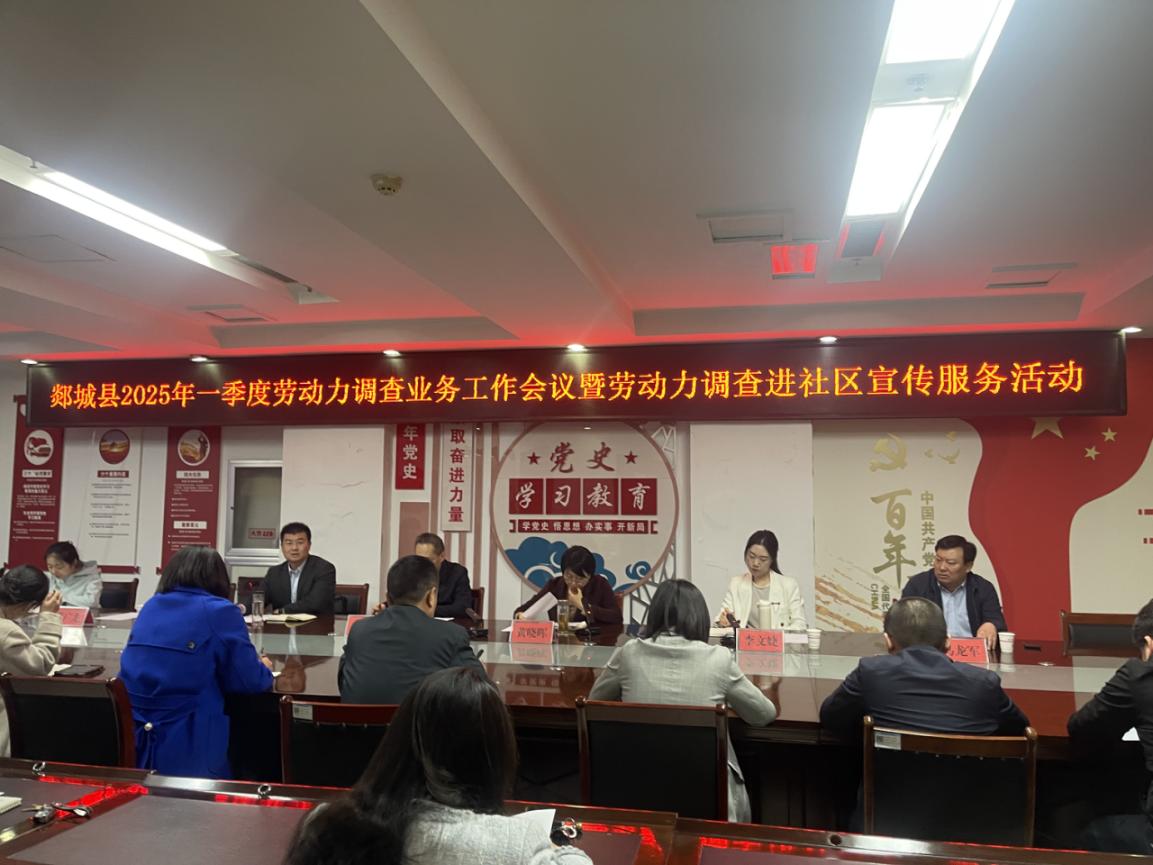 2025年4月14日,郯城县统计局邀请国家统计局临沂调查队、临沂市人社局,联合县人社局召开了全县一季度劳动力调查培训会议,并开展了劳动力调查进社区宣传活动。县人社局、统计局主要负责人、分管负责人、业务科室,有关乡镇统计站站长、人社所所长、调查员共计40余人参加了会议。