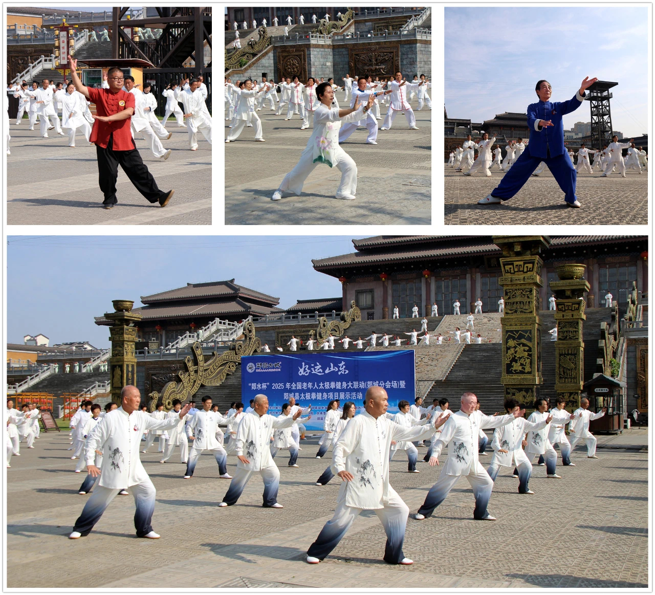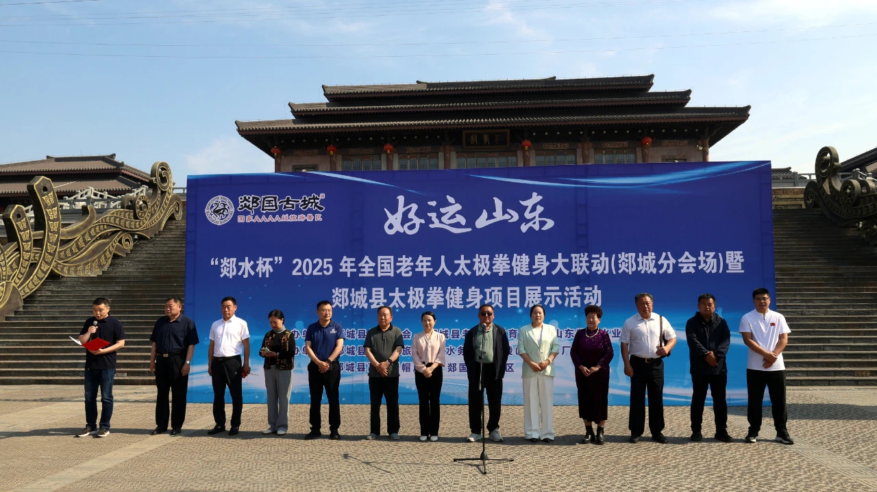 5月24日,阳光明媚,郯国古城景区内热闹非凡。由郯城县体育发展服务中心、郯城县文化和旅游局、郯城县体育总会主办,郯城县老年人体育协会承办,郯城县水务集团马陵山矿泉水厂、郯城高大制帽厂和郯国古城景区协办的 “好运山东”“郯水杯”2025年全国老年人太极拳健身大联动(郯城分会场)暨郯城县太极拳健身项目展示活动在这里盛大举行。来自郯城县城乡24个太极拳基层站点的526余名健身爱好者,身着整齐服装,精神抖擞地汇聚于此,共同展太极神韵,显银龄风采。