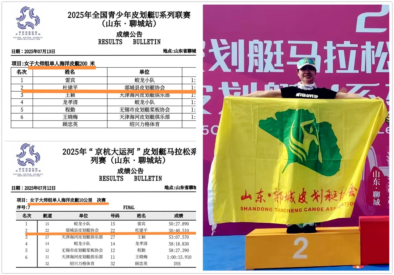 杜建平在女子大师组的表现堪称惊艳。在10公里比赛中,她与广西名将雷宾展开了惊心动魄的较量,最终仅以 0.13秒的微弱差距惜败,摘得银牌;而在200米比赛中,她再度发力,稳稳拿下一枚银牌,用实力证明了自己的顶尖水准。