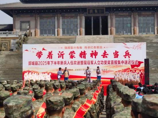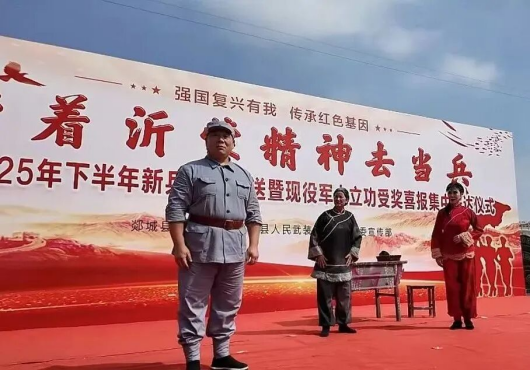 9月14日上午9:00,郯城县在郯国古城郯王宫前广场,举办 2025 年下半年新兵入伍欢送暨现役军人立功受奖喜报集中送达仪式。其中“带着沂蒙精神去当兵”欢送演出中的小戏小剧,成为郯城现场传递红色精神的重要载体,为活动增添了浓厚的红色氛围。