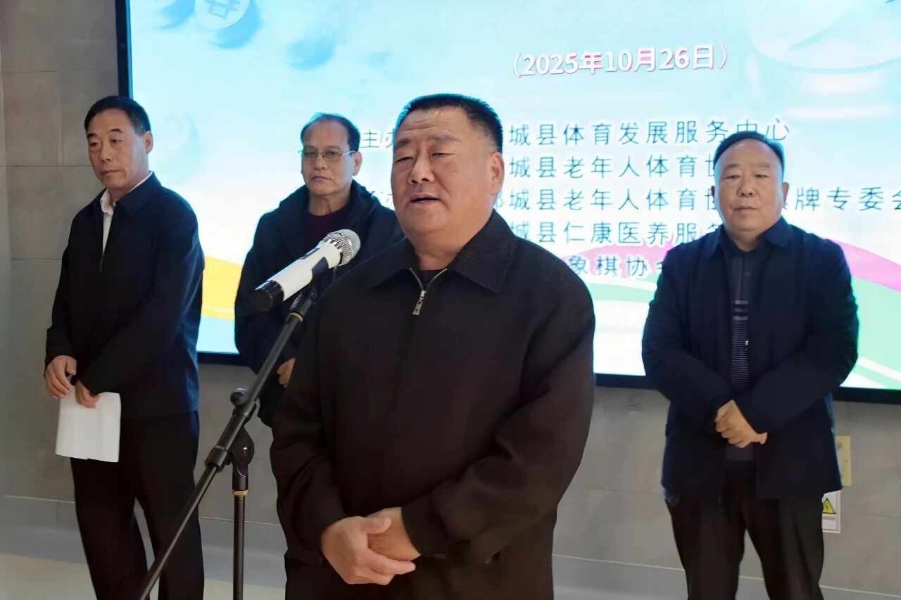 10月26日,郯城县2025年度“仁康杯”中老年人象棋比赛在仁康医养服务中心完成全部赛程。县老年人体育协会主席谷礼勇,监事会主席孙德勤,县象棋协会名誉主席张信国,县体育发展服务中心办公室主任、县体育总会秘书长王甲利,县仁康医养服务中心主任解超杰,县老年人体育协会副主席杜学华、张伟、焦保奎,监事会副主席施利宝等领导出席本次赛事活动。
