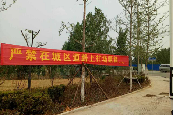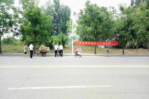执法大队根据日常巡查发现结合往年整治工作经验,将皇亭路、振兴路、西环路、北环路、东城新区等路段和区域列为重点清理整治对象。未雨绸缪,在麦收开始前开展宣传工作,共悬挂宣传横幅75条。发现占道打场晒粮现象后,在帮助农户清理的同时开展面对面的创城及道路安全宣传教育,向农户全面详细的讲解占道打场晒粮对创城的影响及对过往车辆行人造成的安全危害,切实增强农户的创城意识和安全观念,争取对我们整治工作的理解与配合,使他们变被动为主动。执法队员通过以点带面,影响一片,切实提高了广大农户的文明、安全意识。同时加大巡查力度,采取错时执法,提早上路,做到“早发现、早劝阻、早治理、早恢复”。