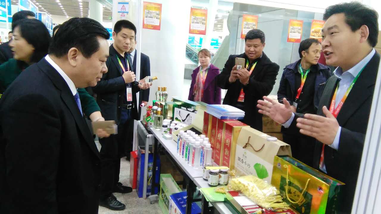展会期间,省经信委主任王信、省中小企业局局长王兆春等领导莅临我县展位参观指导,县中小企业局长冯辉向省经信委主任王信等领导详细介绍了我县参展特色产品,王信主任对我县发展银杏特色产业表示认可。