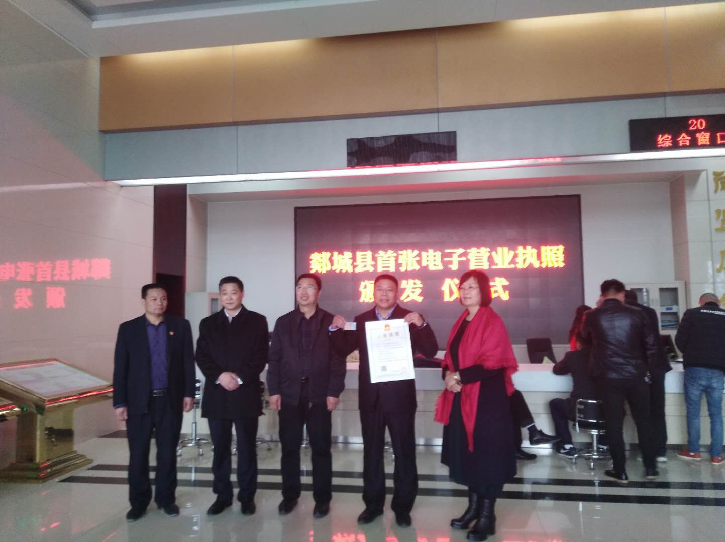 2017年12月28日,郯城县市场监督管理局启动电子营业执照颁发仪式,为临沂市纳鑫信息咨询有限公司颁发了一份电子营业执照。这是该局颁发的首张电子营业执照,这标志着郯城县商事制度改革进入全程电子化时代。