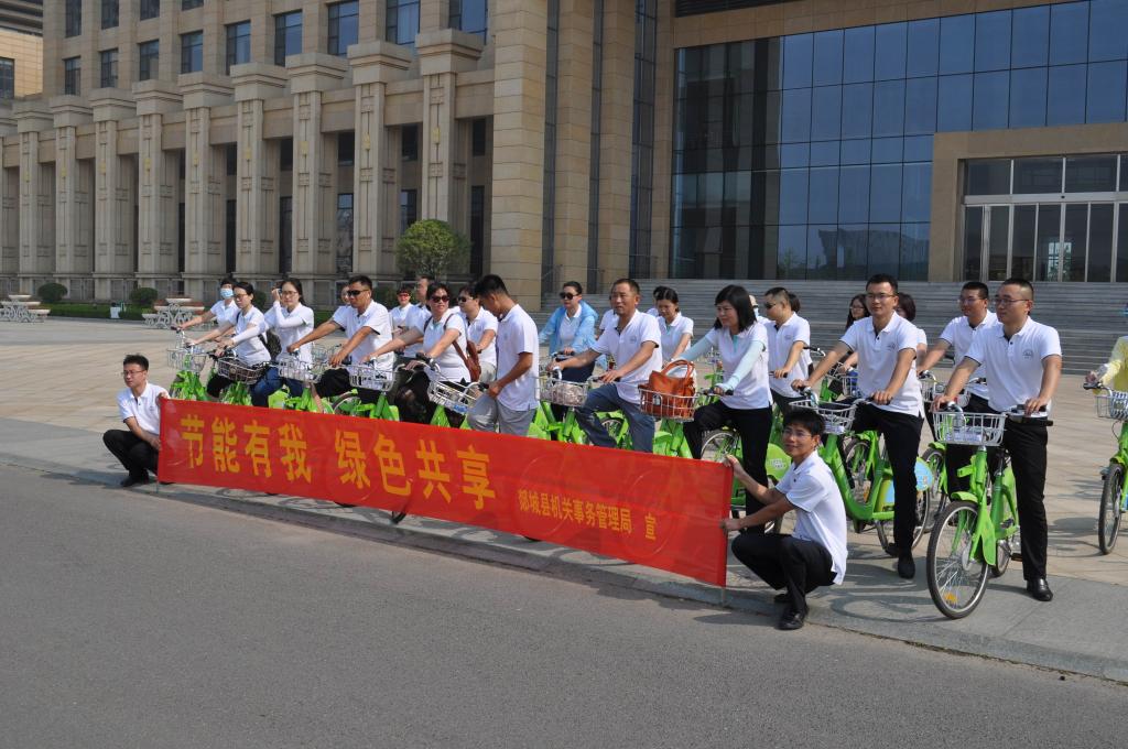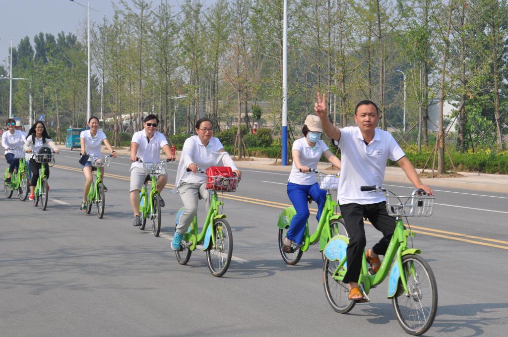 节能联络员们热情高涨,骑着公共自行车从县文体中心出发,沿着人民路、红石崖路骑行,途经县天元郯城综合服务中心等多处公共机构集中的办公大楼,骑行路程约5公里,公共自行车队伍井然有序,形成了一道靓丽的风景线。