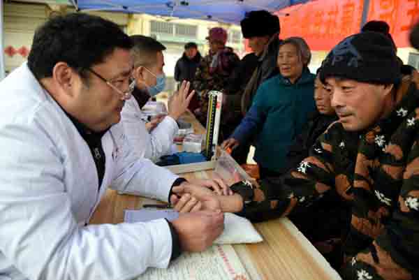 2019年12月18日,山东省临沂市郯城县健康扶贫医疗服务队在马头镇马西社区桑庄村为贫困群众义诊。
