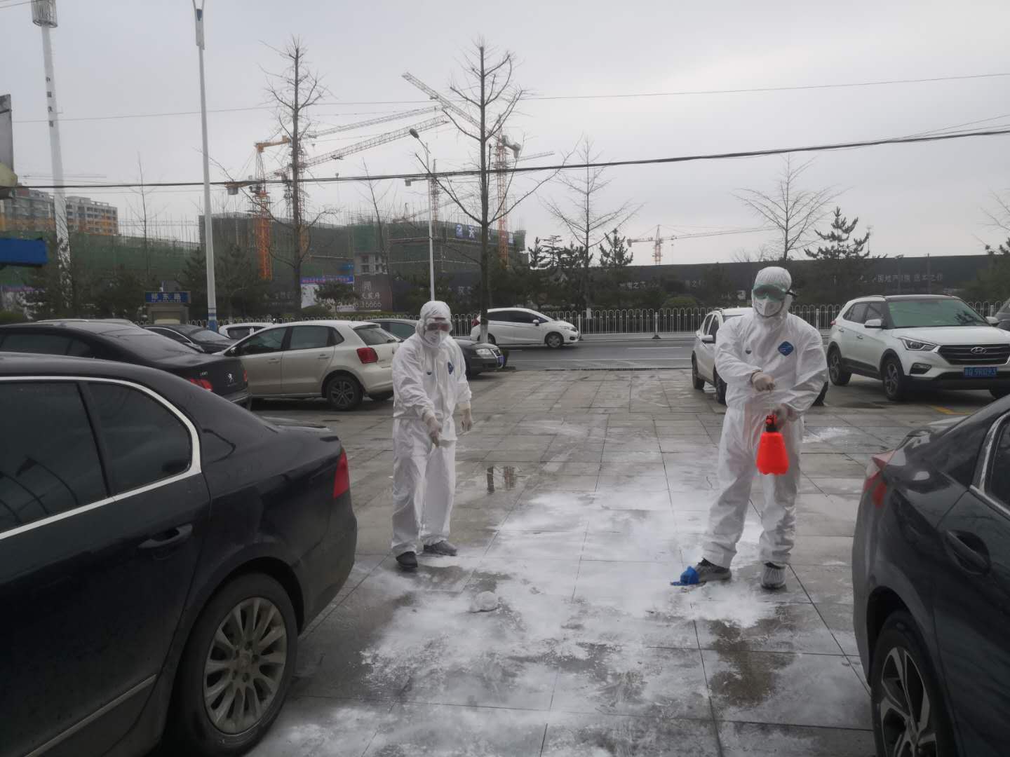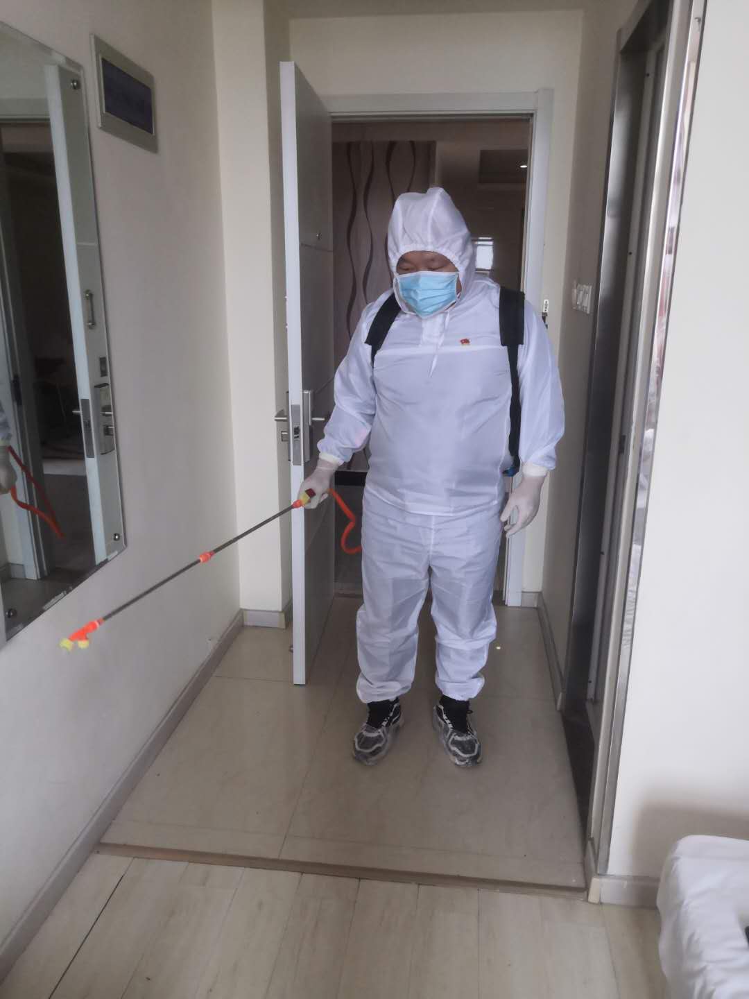 隔离点所在的宾馆共53个房间,室外2700余平方米,为确保区域消毒不留死角,倪维栋兑好消毒水,背上巨大的喷雾器,楼上楼下、室内室外,一日数次进行日常消毒……尽管室外寒气袭人,但每趟下来,倪维栋都浑身大汗淋漓,连防护服都浸透了,顺着裤管流进雨靴内,每次脱下来都可倒出许多汗水。