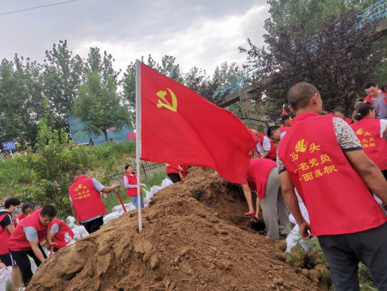 我是党员我带头,一名党员就是一面旗帜。哪里汛情最急,哪里险情最重,哪里就能看到党员干部的身影,他们无惧艰险、不畏生死,成为人民群众的主心骨。当洪水袭来时,来自各行各业、各个年龄段的志愿者们,积极奔赴防汛一线。