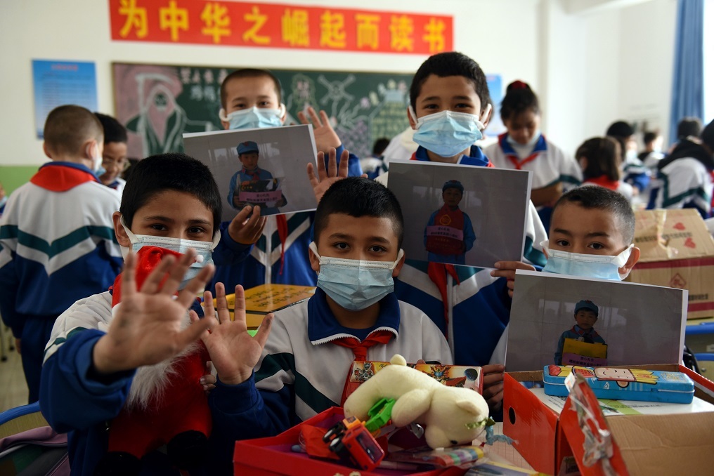 新疆喀什麦盖提县第四中学和郯城罗荣桓红军小学是“友好结对学校”,此次赠送的“爱心大礼包”表达了两地师生的深情厚意,体现了鲁疆一家亲、民族大团结。