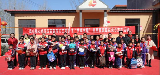 3月5日,庙山镇石桥党支部举办“共享书屋”启用仪式暨雷锋纪念日活动,结伴郯城县第一实验小学的师生们,热心为农家孩子捐送书包、书刊及众多学习用品,并献上精彩舞蹈《我们是共产主义接班人》。活动现场秩序井然、氛围浓厚,学生深受鼓舞、群众备受感动。