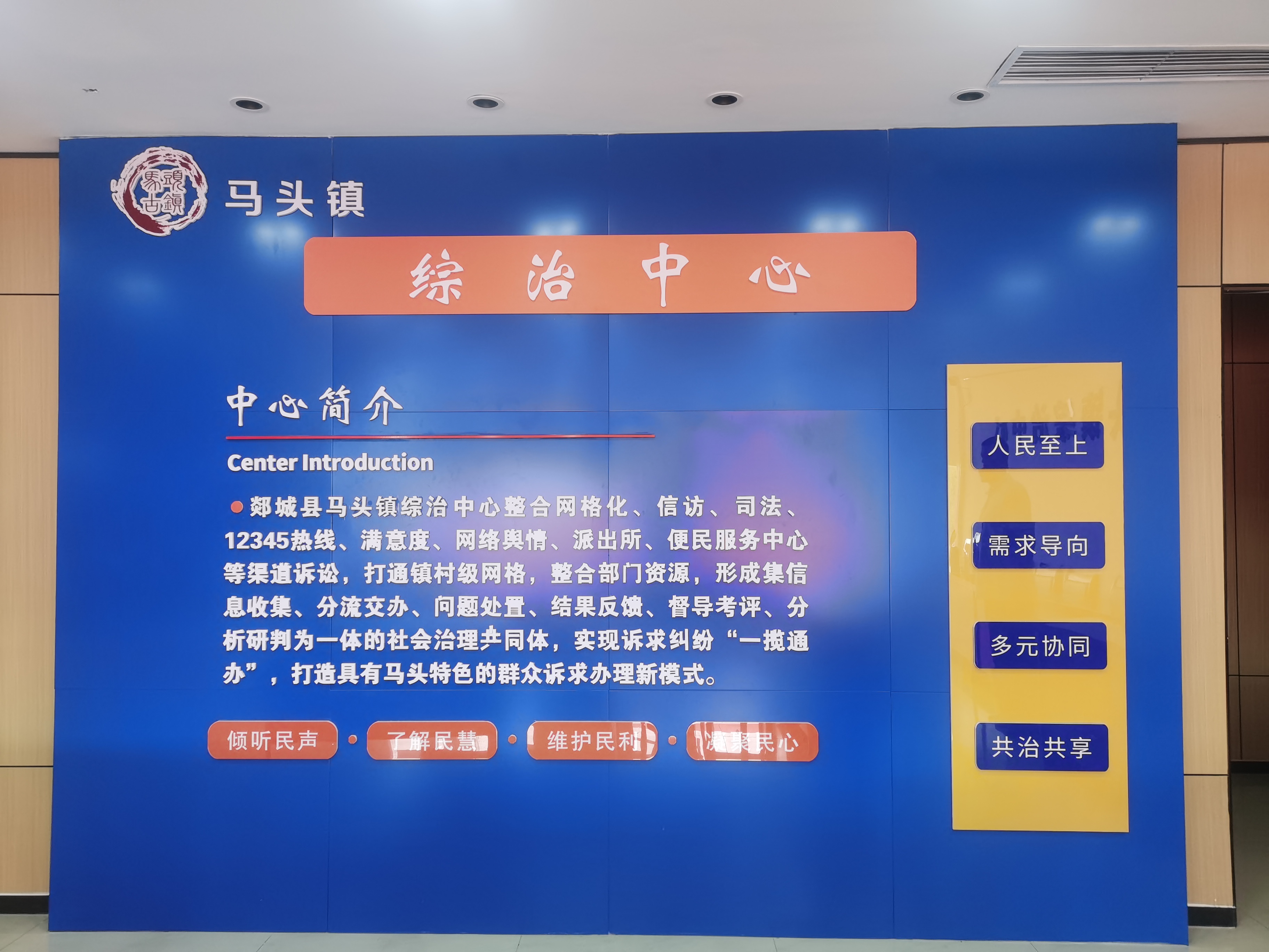 以“网格+”体系为补充,搭建“一体两翼”治理服务新格局。按照“网格+服务”原则,打造基层社会治理共同体。一方面,本着让群众“最多访一次”的理念,为来访群众解决诉求纠纷一站式服务,形成具有马头特色的群众诉求办理新模式;另一方面,进一步深化机构改革,推进职能转变,简化审批流程,切实做到“三个一”:一个窗口受理,一条龙服务,一站式办结,确保让群众“最多跑一次”。