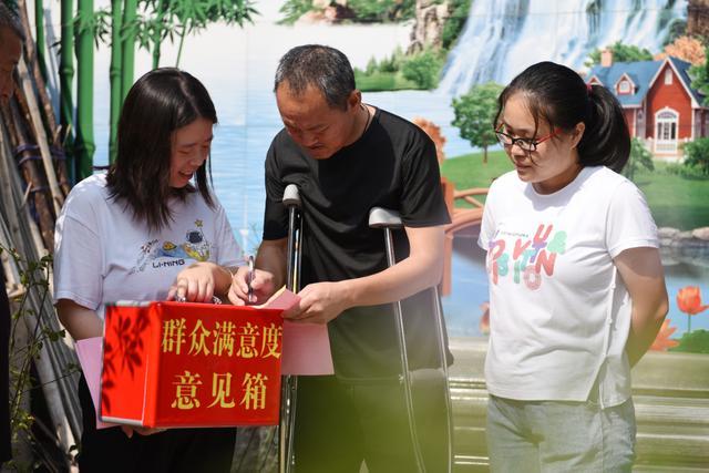 为确保本次活动取得实效,本着为群众提供方便快捷测评方式的原则,本次活动主要以两种方式进行,一是现场测评,工作人员现场向群众发放满意度测评表,群众不记名测评投票;二是流动测评,考虑到部分群众无法到现场测评投票,设置了流动票箱,工作人员入户发放测评票,倾听群众的心声。