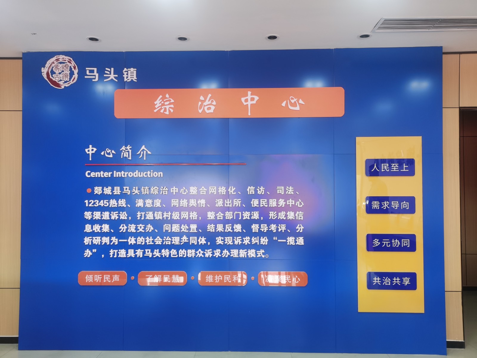马头镇探索建立马头镇多元化调解纠纷机制,建立镇调解中心1个、10个村调委会,聘请人民调解员91名、法律顾问5名,形成政法委员组织、综治中心牵头、站所资源参与、调委会和法律顾问补充的“一站式”矛盾纠纷化解体系,把矛盾纠纷解决在基层,严防越级上访、杜绝进省进京上访案件的发生,确保把矛盾纠纷解决在第一关口、问题化解在第一防线。镇综治中心收集梳理网格员排查上报、信访转办、“12345”热线等群众诉求、矛盾纠纷,对当前的社会维稳形势进行整体研判、分析解决具体工作中出现的重点、难点问题。强化问题事项在12345热线、信访、人民调解、司法调解、民调中心等矛盾化解部门之间的分流协作、闭环办理,联动化解各类矛盾隐患,打造纠纷多元化解新高地。