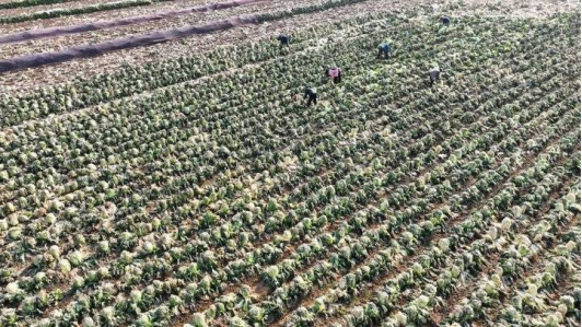 12月7日,马头镇圩东村。菜农在忙着收获大田白菜。