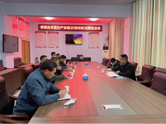 12月9日下午,郯城县召开农业全产业链(白羽肉鸡)培育工作座谈会。郯城县白羽肉鸡全产业链的相关企业参加了会议。