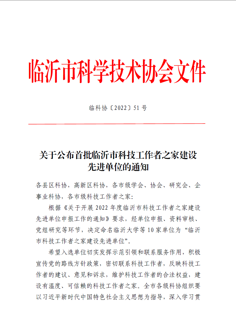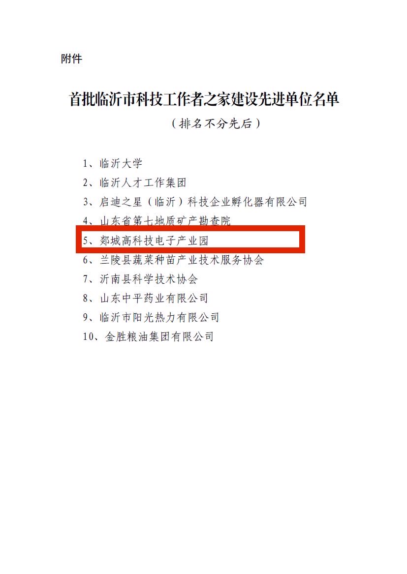 近日,临沂市科协公布了《关于公布首批临沂市科技工作者之家建设先进单位的通知》,郯城高科技电子产业园成功入选。