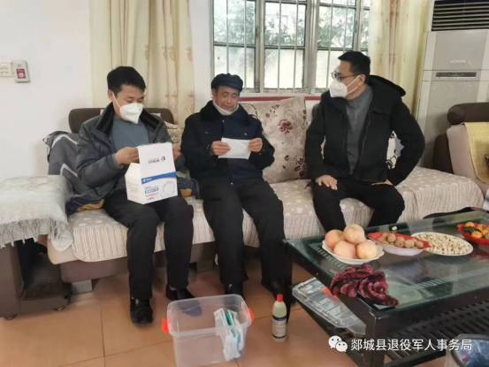 为进一步弘扬拥军优属的光荣传统,提升广大退役军人的幸福感、获得感与尊崇感,12月28日至29日,县退役军人事务局二级主任科员陈贵强带队走访慰问部分军休干部、企业军转干部、自主择业军转干部,为他们发放N95口罩、84消毒液、医用酒精、荆防颗粒等防疫物资。