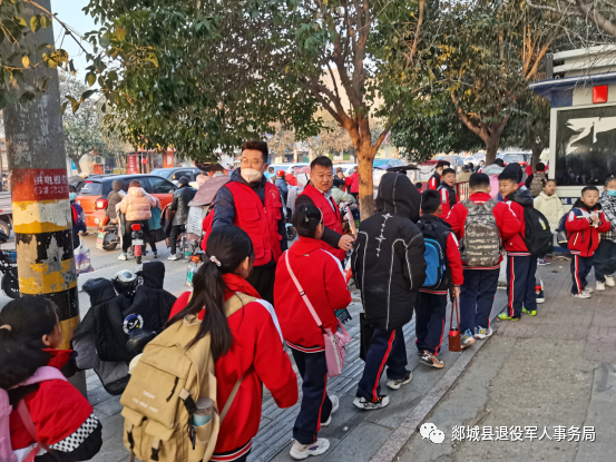 郯城县东方红小学位于郯东路与古城路交汇处,学校门前路况复杂,早高峰期间车流量、人流量较大,学生入校存在很大安全隐患。为确保高峰期道路畅通,学生平安有序入校。2月28日,郯城县退役军人事务局、郯城街道退役军人服务站联合“山东老兵”志愿服务队志愿者开展“老兵护学”志愿服务活动。