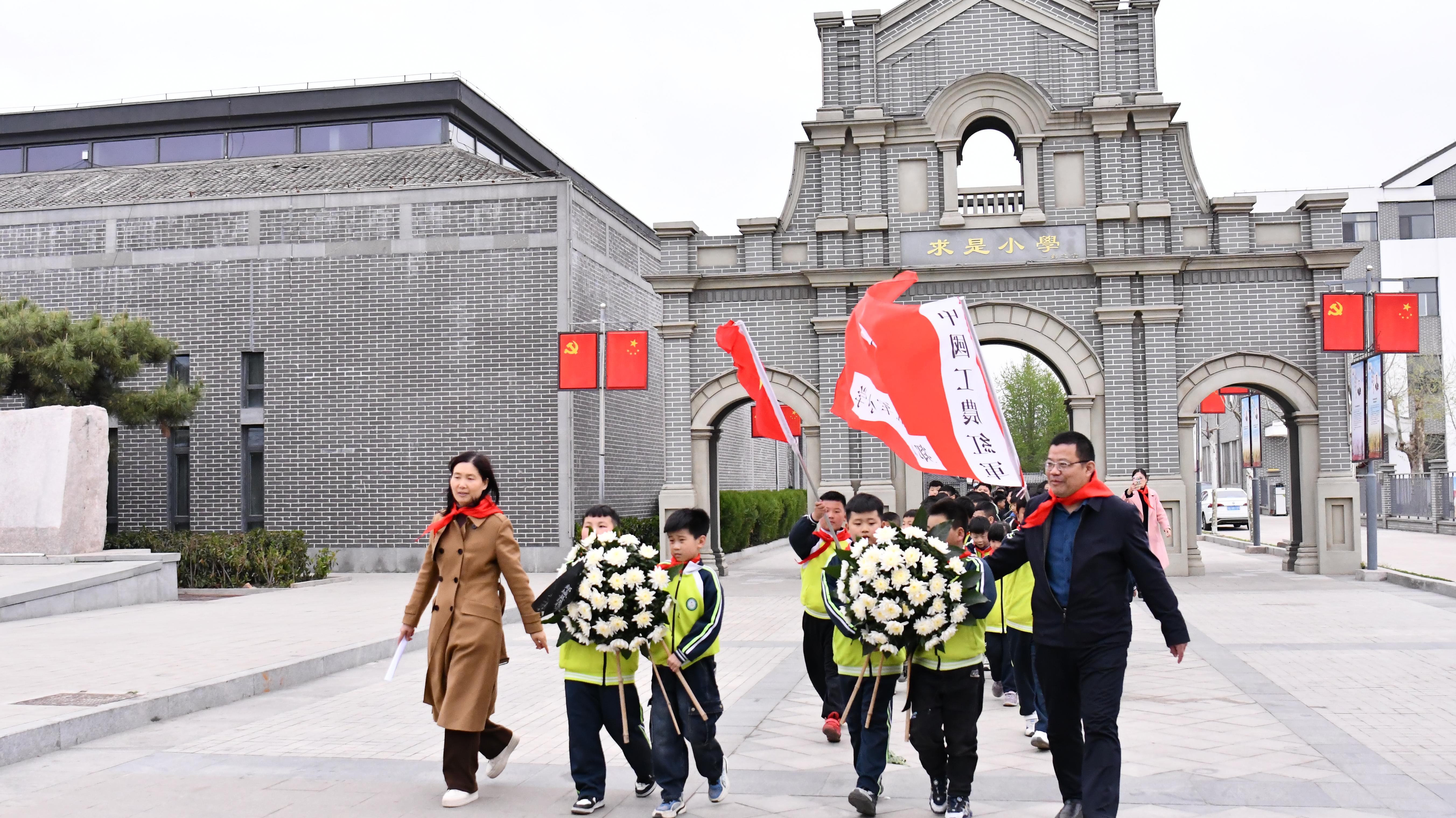 宣讲结束后,罗荣桓红军小学的学生们参观了鲁南第一支部,为刘之言烈士敬献了鲜花,在刘之言烈士塑像前重温了中国少年先锋队誓词。