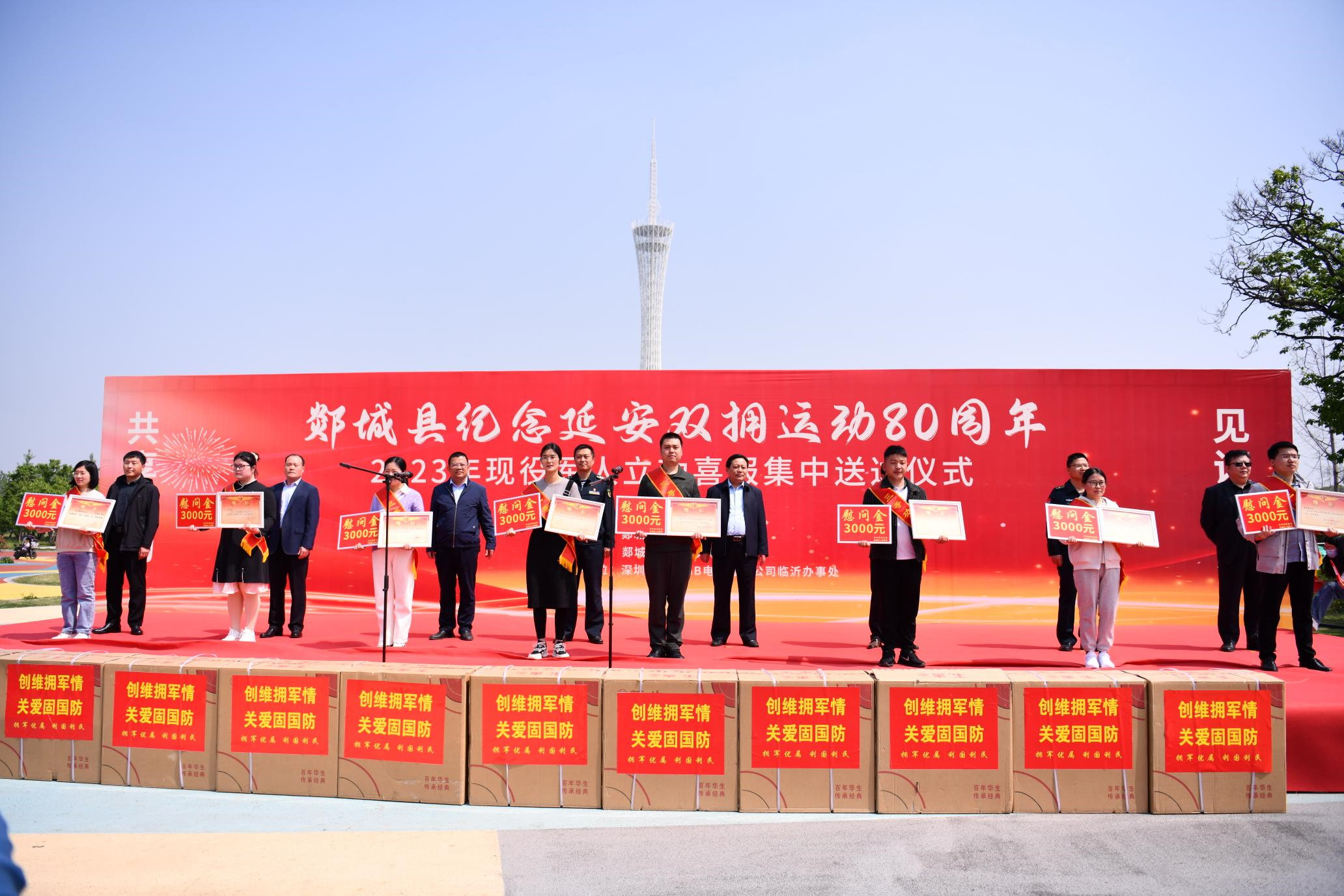4月26日,郯城县2023年现役军人立功喜报集中送达仪式举行。县委常委、县人武部政委辛华帅 ,副县长、县公安局局长周振出席仪式。