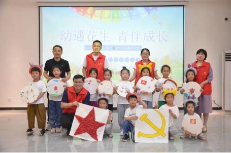 缤纷的六月,七彩的童年。为了让儿童充实地度过这个节日,在自己的节日中尽情地展现自我,体验幸福,感悟成长,马头镇黄金殿党支部组织召开“幼遇花生 青伴成长”志愿服务活动。