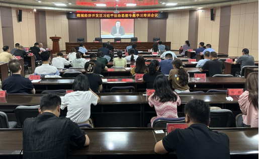 8月7日,郯城经济开发区组织习近平法治思想专题学习培训,全体人员集中观看了中国人民大学法学院教授王旭讲授的《习近平法治思想》教学视频。