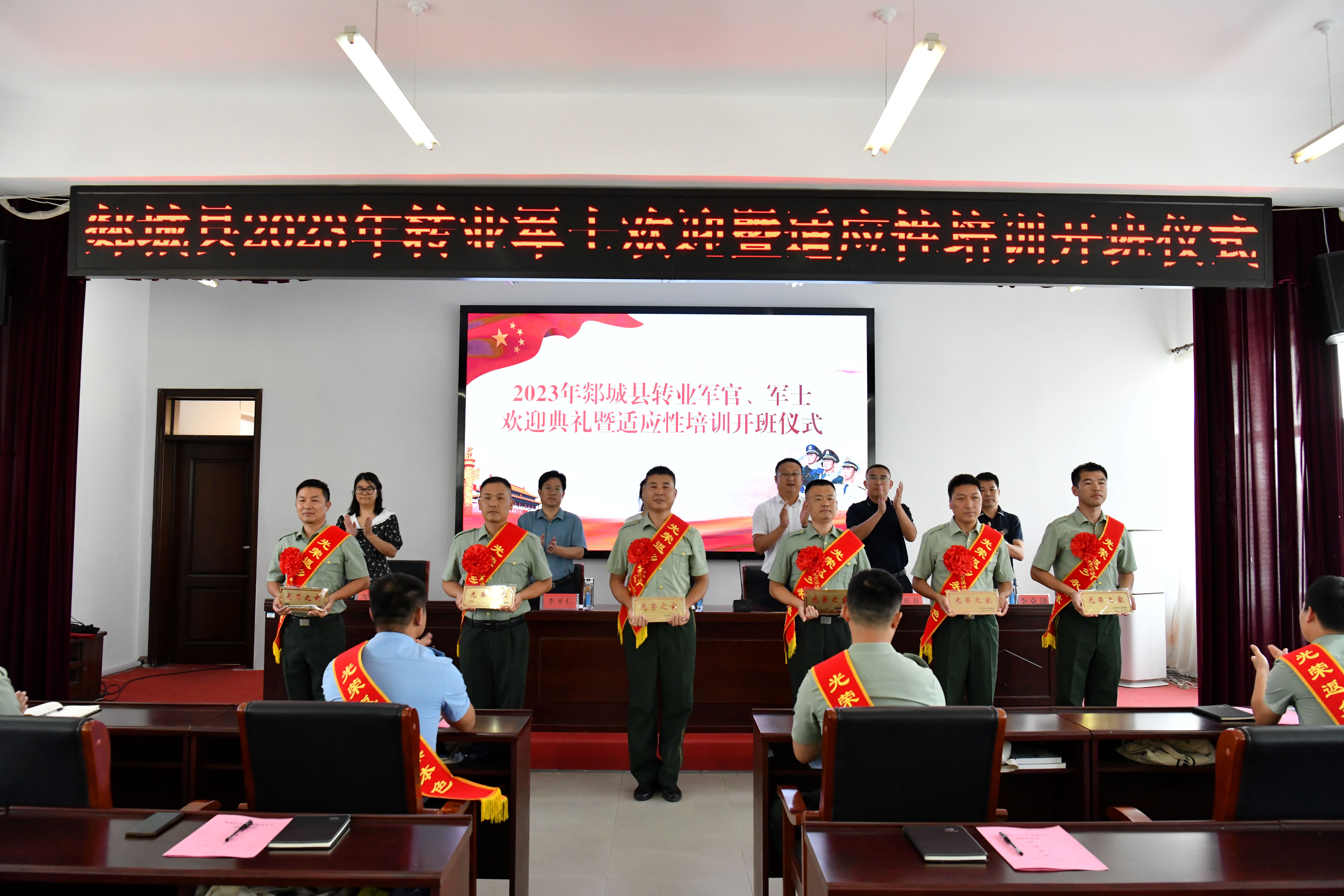 为进一步在全社会营造当兵光荣、尊崇军人的浓厚氛围,使广大退役军人拥有更多的荣誉感、归属感、获得感,8月15日,郯城县退役军人事务局隆重举行2023年度转业军官、由政府安排工作退役军士欢迎典礼暨适应性培训仪式。县退役军人事务局党组书记、局长郑文波,县委统战部副部长李润生,县退役军人事务局党组成员、副局长李平仁,临沂市电子科技学校副校长王庆磊,相关业务科室负责同志,2023年度转业军官、由政府安排工作退役军士参加开班仪式。