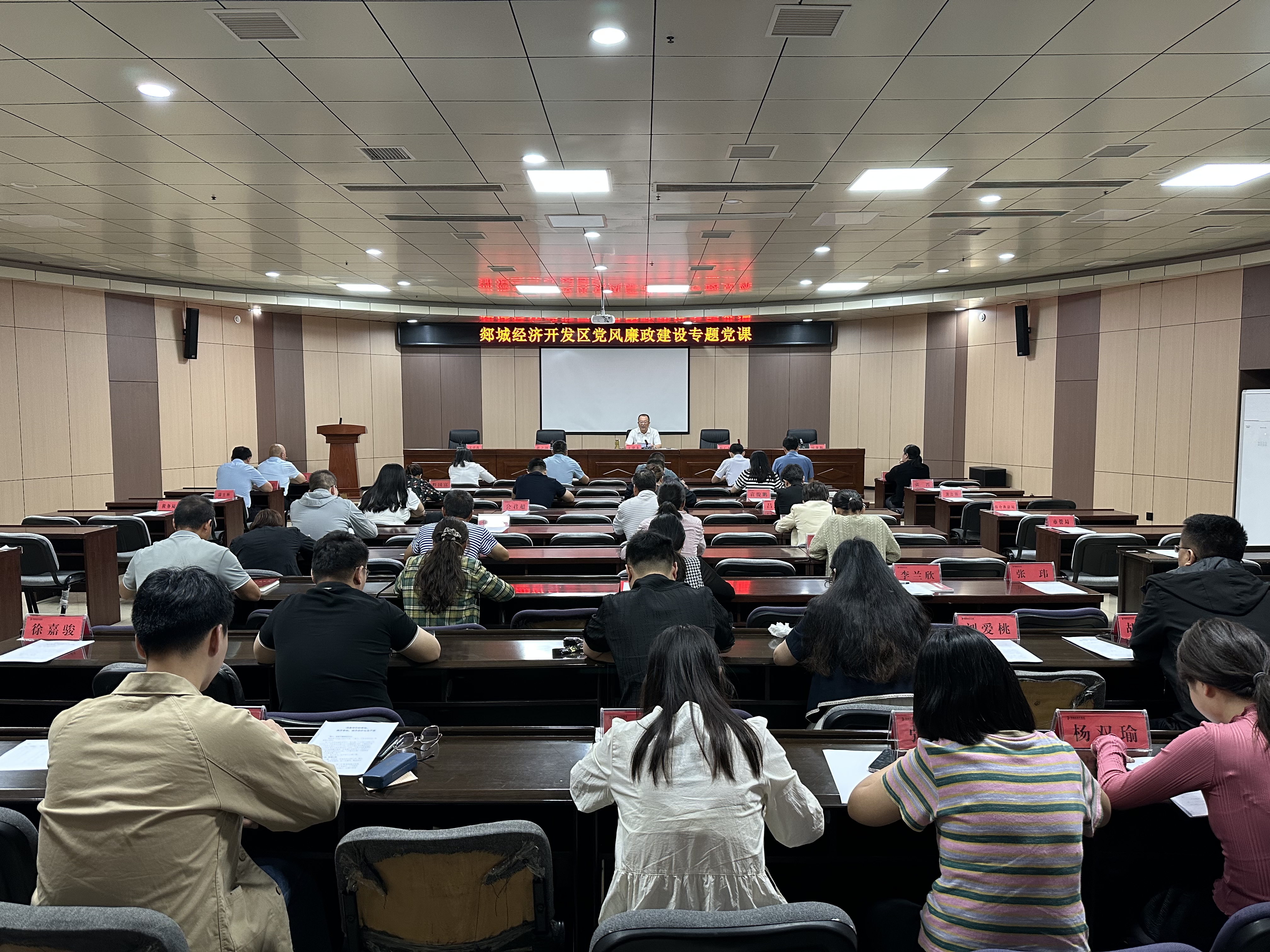 廉政党课树高线。8月28日,经济开发区党工委副书记、管委会主任王建龙同志以《筑牢廉政思想根基 践行忠诚干净担当》为题,为全体党员干部讲授了一堂深刻的廉政教育专题党课。党课深入浅出,结合廉政理念、典型案例和开发区廉政风险点,把风险提示到,把责任讲清楚,把纪律规矩讲明白。