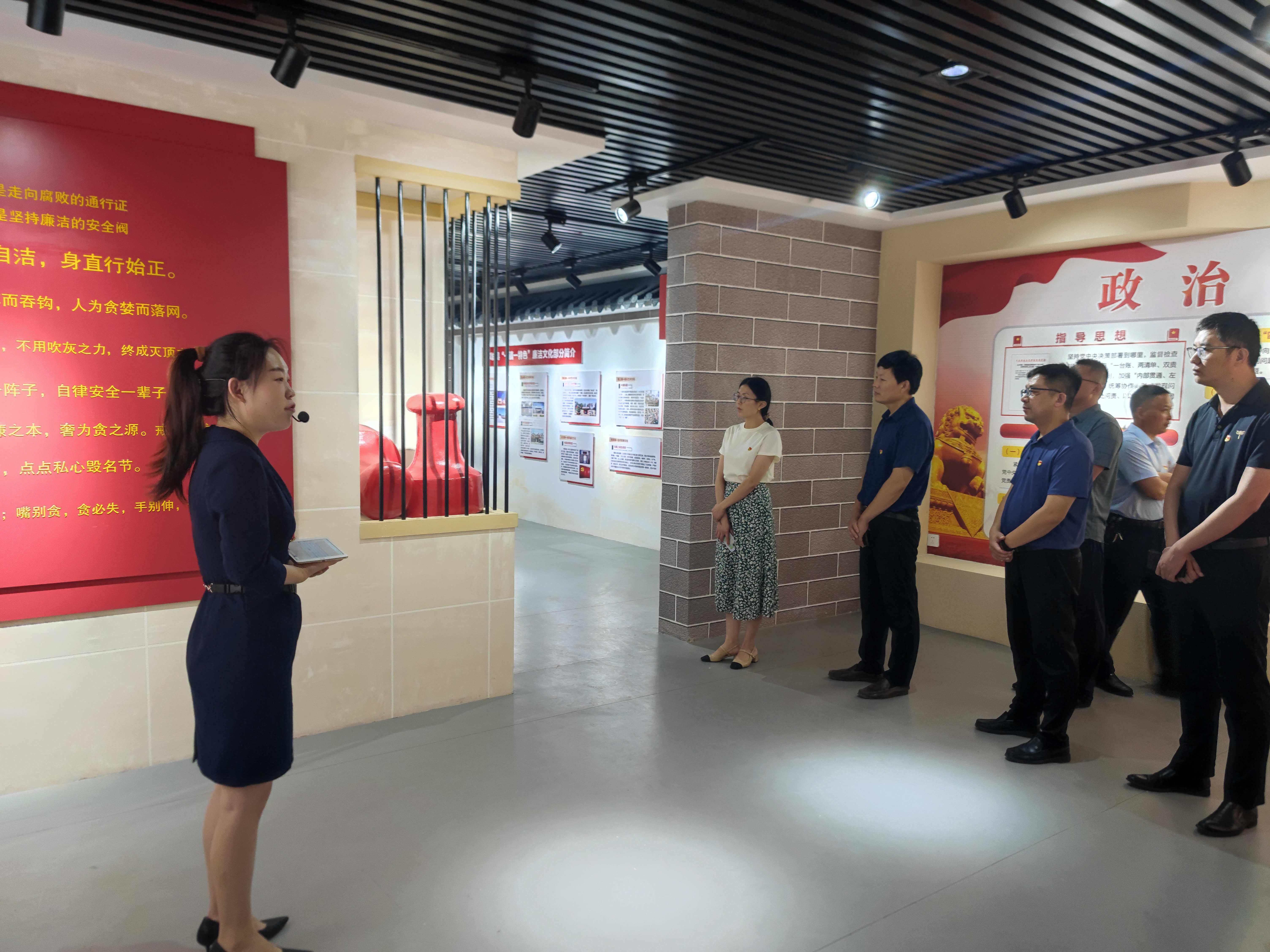 警示教育敲警钟。组织全体干部现场观摩县廉政警示教育基地、廉洁书画展,通过参观“警钟长鸣”、“贪欲之井”、“腐败案例”、“廉洁字画”等展厅,提醒党员干部要守住底线、不踩红线、不碰高压线,带头树立思廉、崇廉、尚廉的形象,永葆清正廉洁的政治本色。