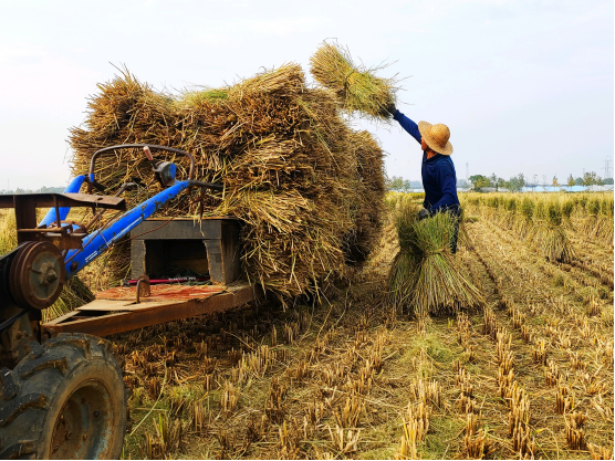 10月18日,在马头镇采莲湖片仇高册农民正在抢拾稻草,过去一文不值的稻草如今成抢手货。